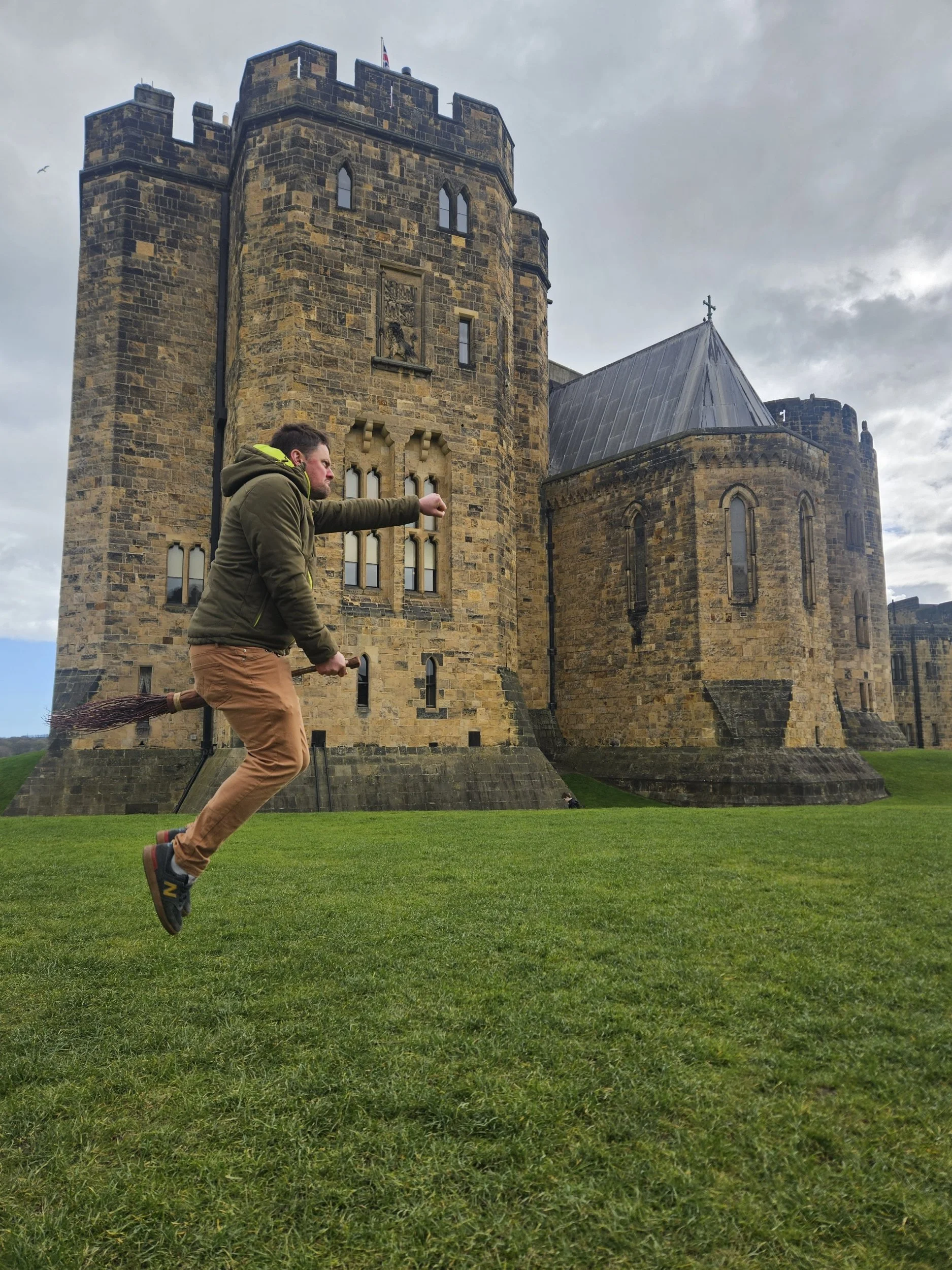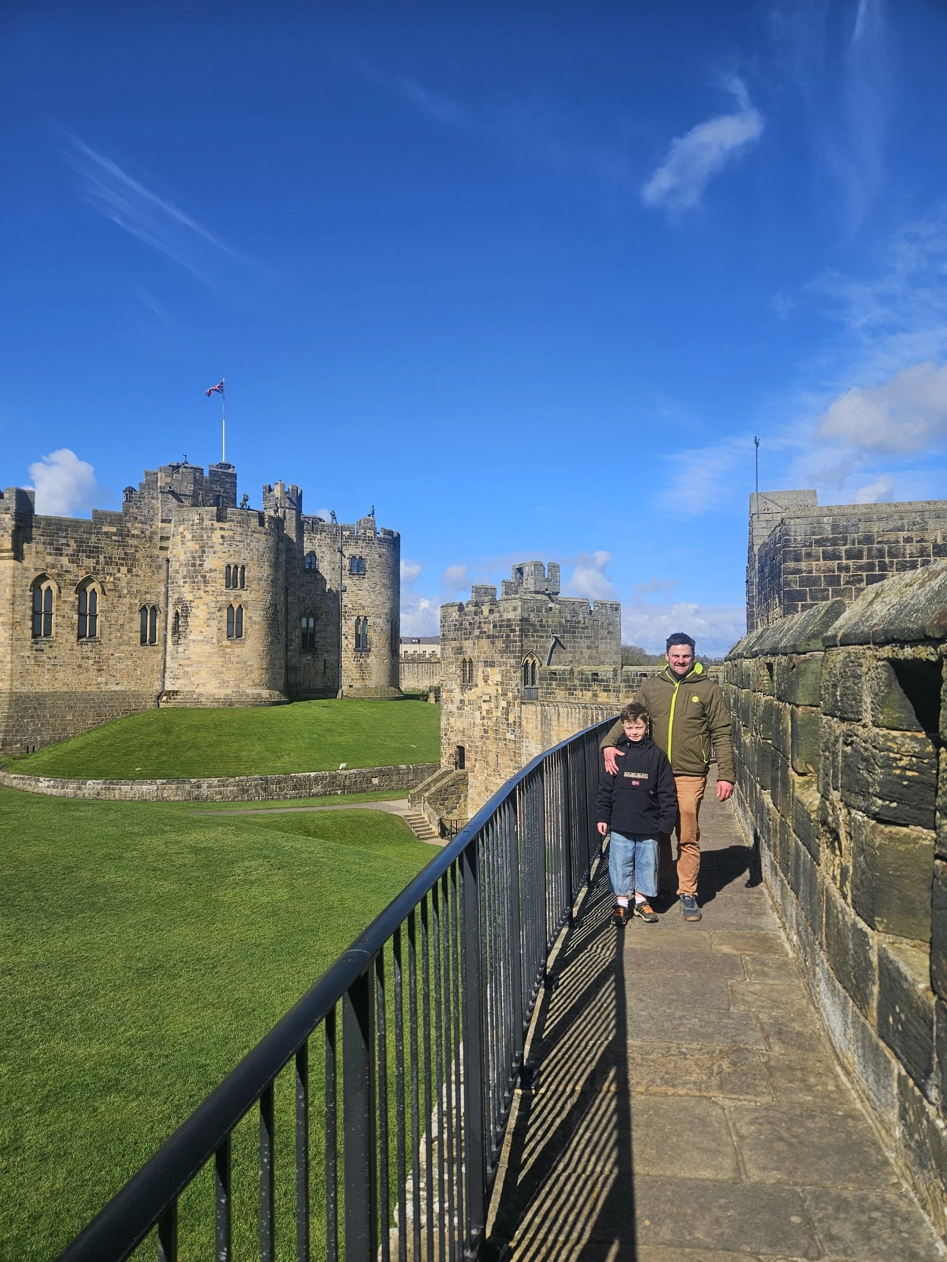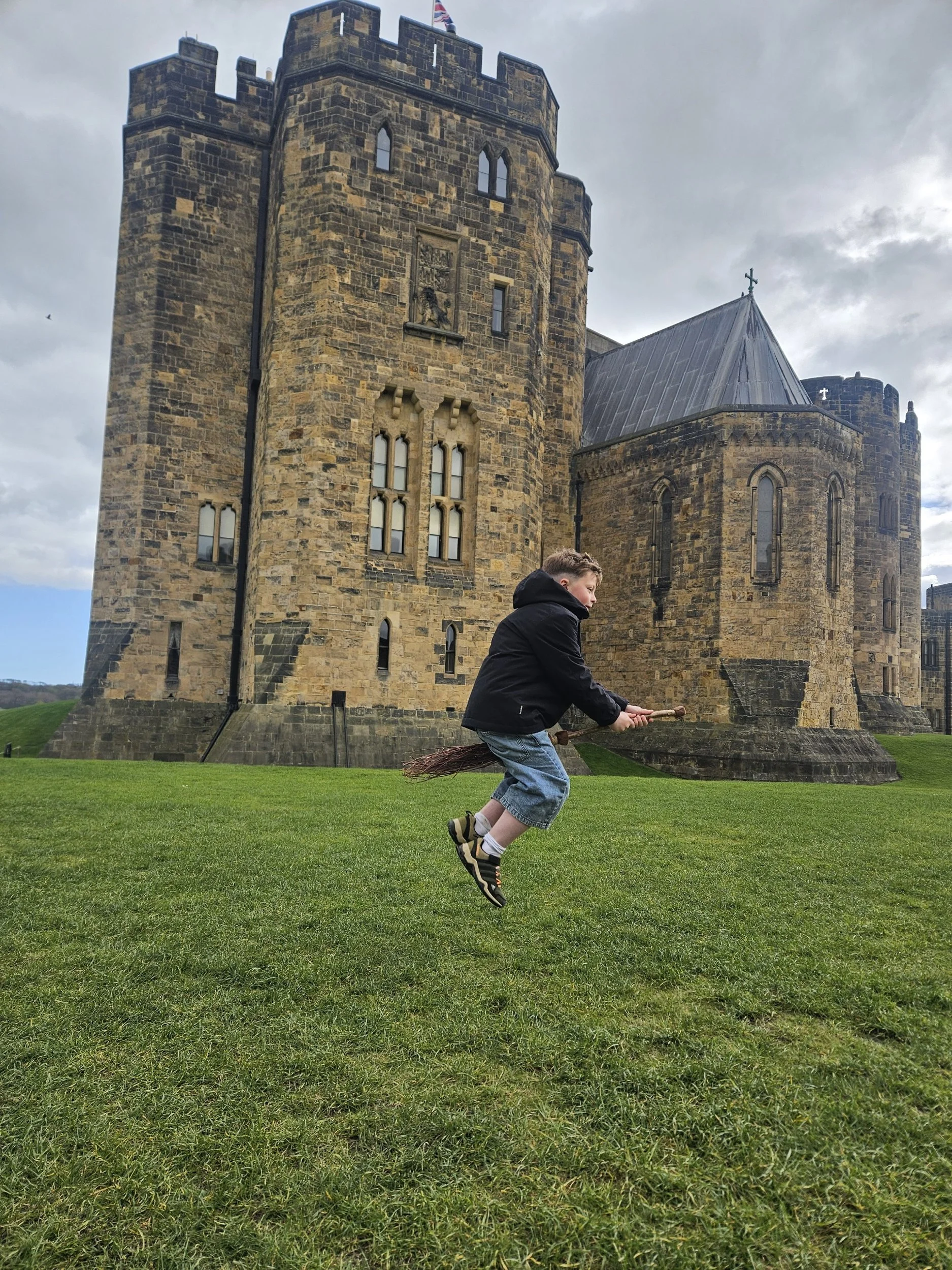 Last time, we missed out on the Broomstick lessons, so we headed straight to the Artisans' Courtyard to book into the 11am session. While the grounds were quiet, we wandered through the inner and outer baileys and up to the Gun Terrace, which offered excellent views across the surrounding landscape.