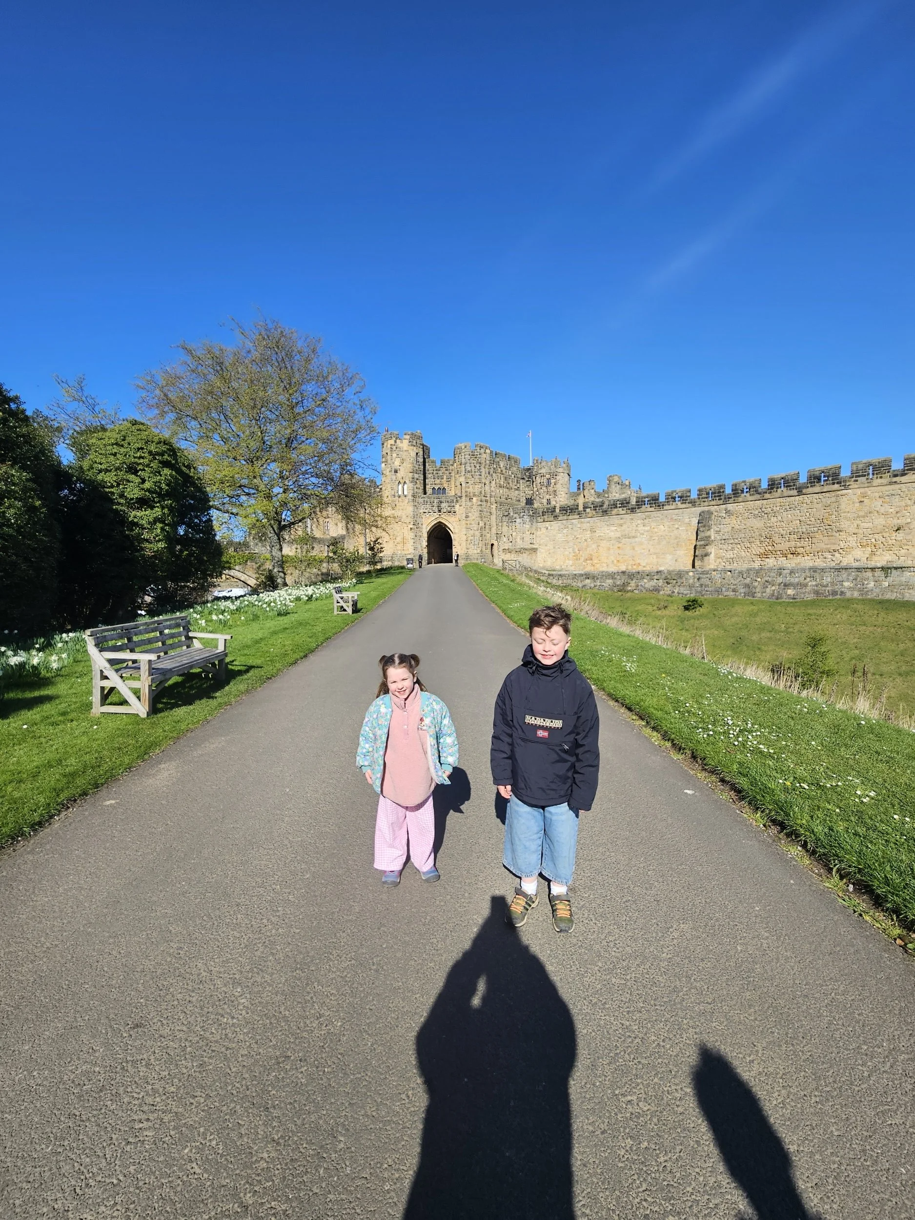 The next morning, after a delicious breakfast from Budle Bites — a veggie sausage sandwich alongside a full English breakfast complete with black pudding — we packed up and set off with plenty of time to reach Alnwick Castle for its 10am opening. We waved goodbye to some fellow VW campers with the promise of returning to the site soon.