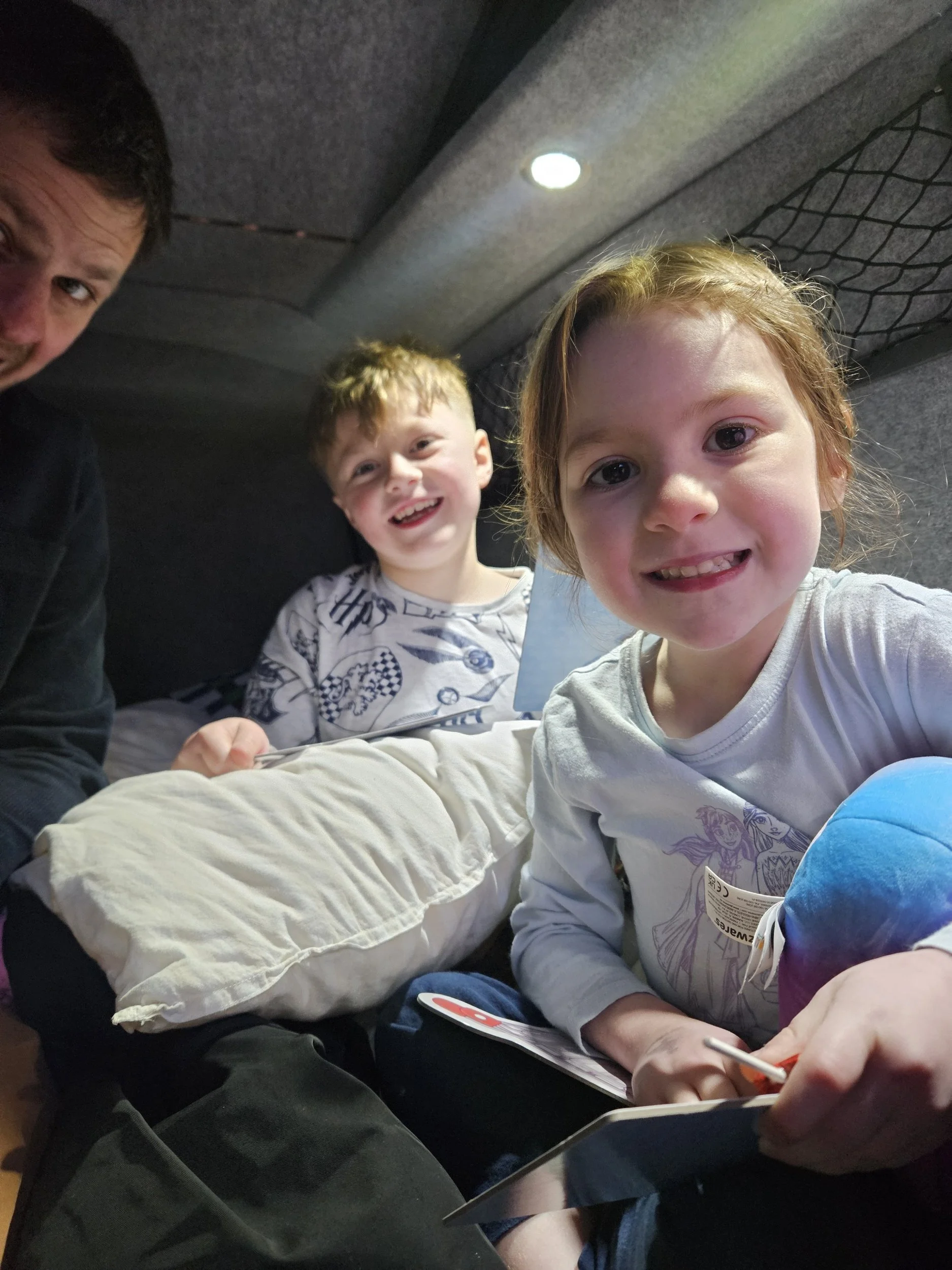 With the sun setting, we played a few games—something Esme always expects whenever we’re staying in the van—and then opted for an early night. The site grew dark and a scatter of stars appeared overhead; the campsite’s recommendation to bring torches made sense. It was quiet and peaceful all around, and we ended up having a great nights sleep.