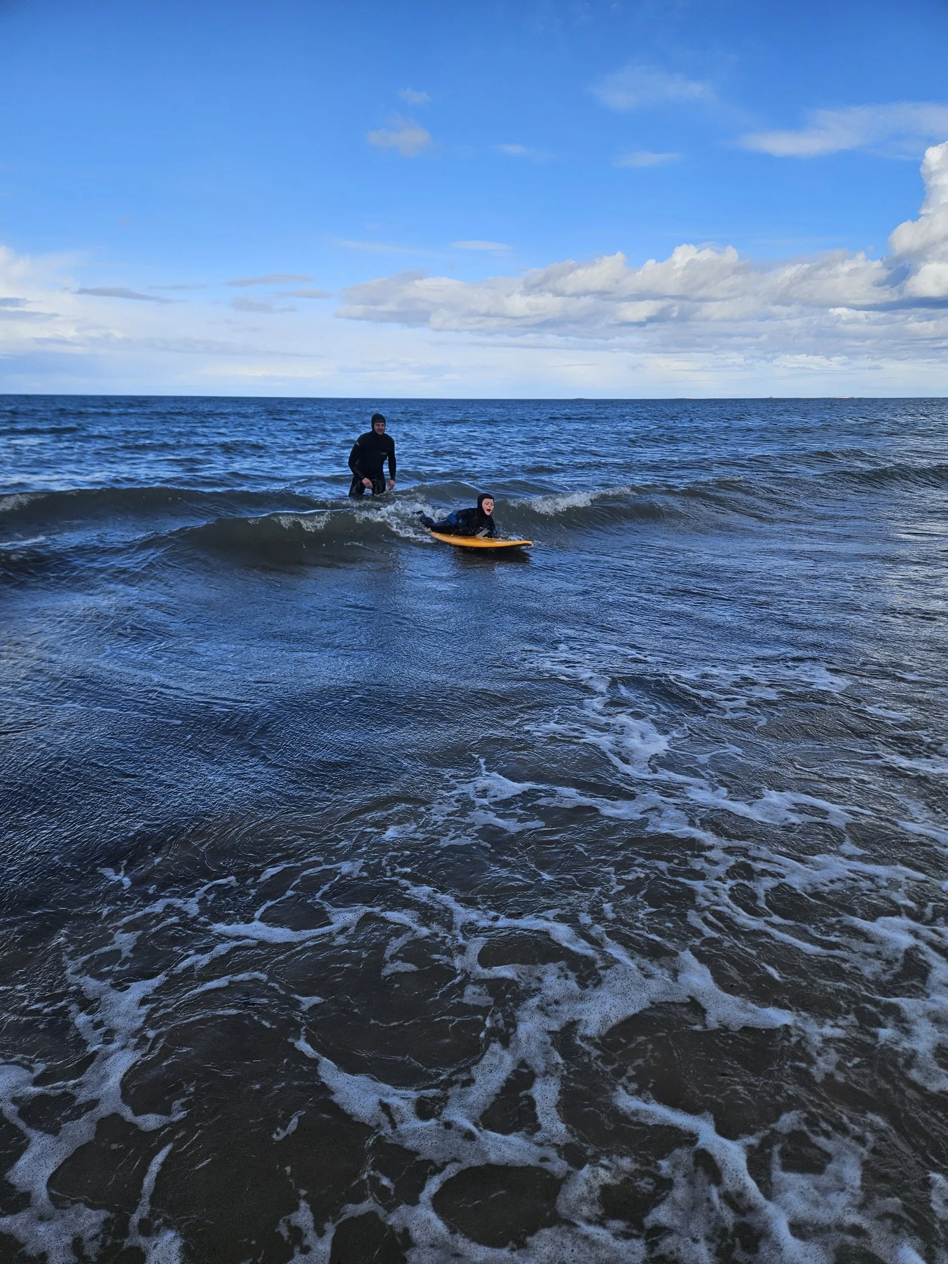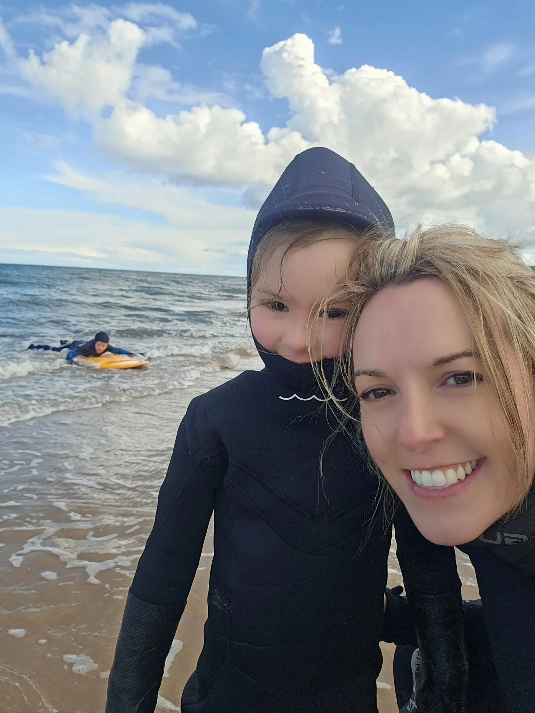 We spent the last weekend of the Easter holidays up on the Northumberland coast. We headed straight for Bamburgh Beach for a bit of surfing, although the waves were only about a foot high — perfect for the kids to paddle and play in. Even though the North Sea was baltic, they had a great time on the boards and hunting for little treasures in the sand. After being tossed from her board a few times, Esme called it a day and we made our way back to the van to get changed.