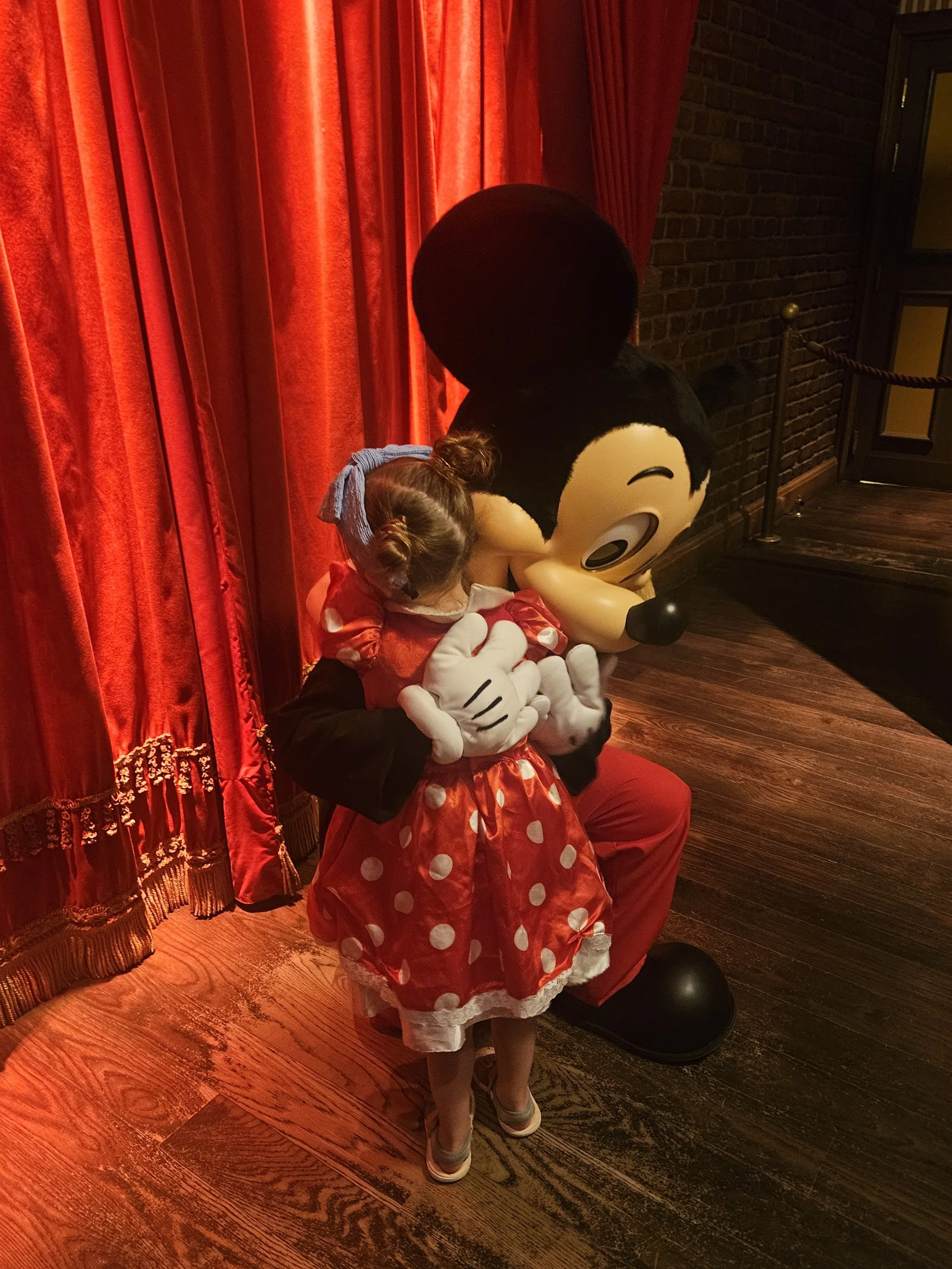 Esme was initially shy to greet Mickey but eventually did so once Sam had given him a cuddle. The cast members kindly allowed us to take our own photos and even used my phone to capture a family photo. They also provided us with a photo pass, which can be used to purchase the photos at a kiosk or download them online for a fee.