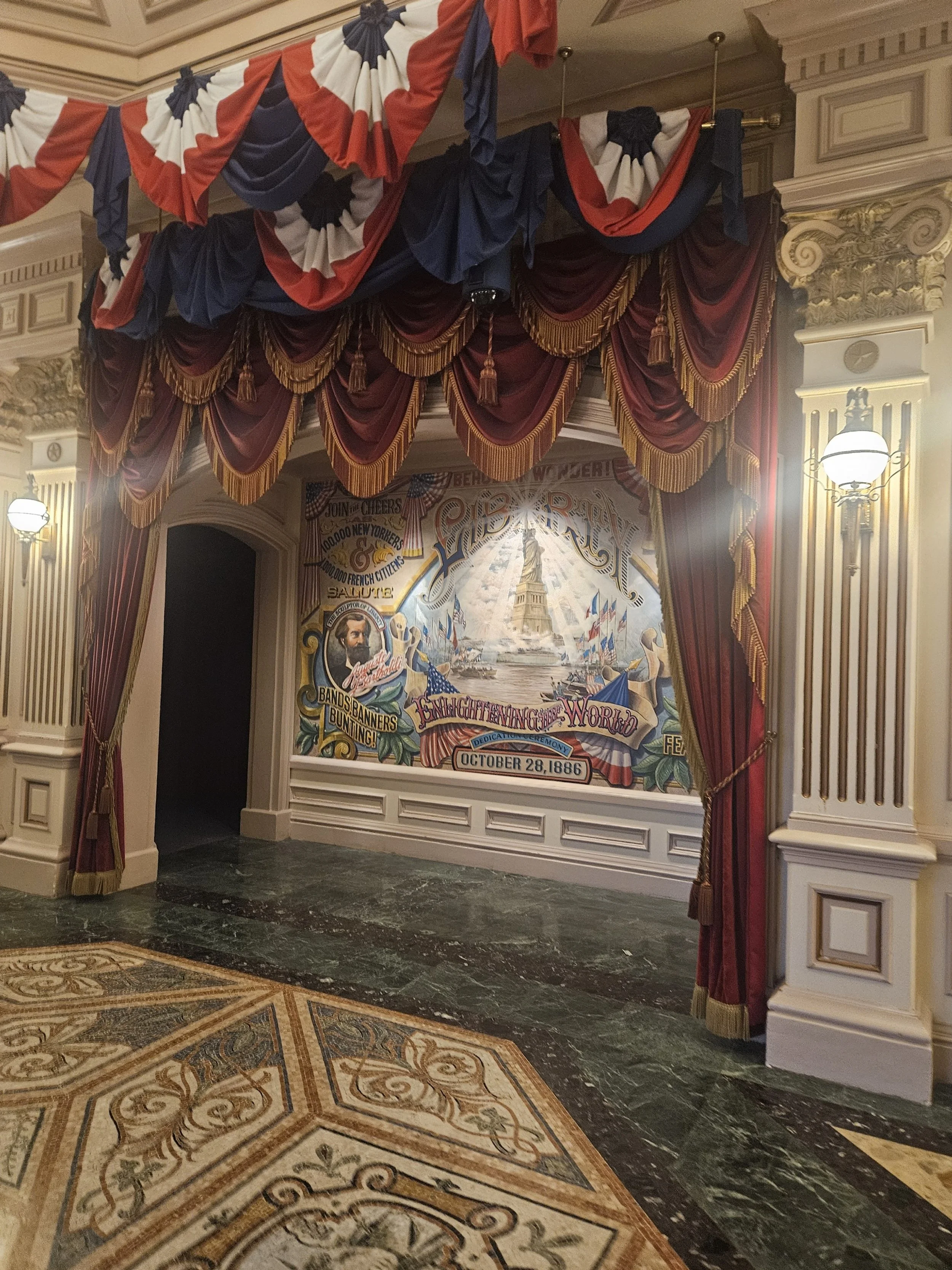 We slowly worked our way down Discovery Arcade, lit by gas lanterns, taking our time to peek into each of the shops along the way. The arcade provides a documentation of the construction of the Statue of Liberty – you can even take part in the statue’s grand inauguration at the Statue of Liberty Tableau, which is located about halfway down the arcade. Afterward, the kids happily spent the remainder of their holiday money and I couldn’t resist picking up a delicious Mickey Beignet along with Disneyland Music Festival souvenir cup!
